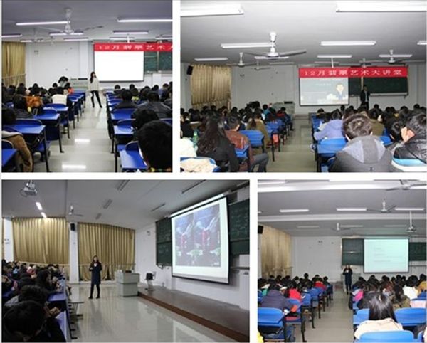 10月22日,由曾茜老师主讲的“女性艺术家艺术作品中的女性形象” 展示了艺术领域女性的成就和造诣;10月28日,由左中玥老师主讲的“中外绘画艺术”以大量的摄影作品诠释了中外艺术的不同造诣;10月29日,汪睿老师主讲的“消费时代背景下艺术家与时尚的跨界合作”展示了艺术在其他领域的魅力;12月8日,胡杨老师主讲的“新理念导航下的高职教育”全面介绍了在校三年的学习内容和学院的培养目标;12月15日,张婷屹老师主讲的“艺术设计”以大量的创意广告传播了“艺术就是放肆,设计就是克制”的观念;12月23日,高海燕老师主讲的“印象派艺术”展示了莫奈等多名大师的手稿,介绍了印象画派的代表人物和代表作。