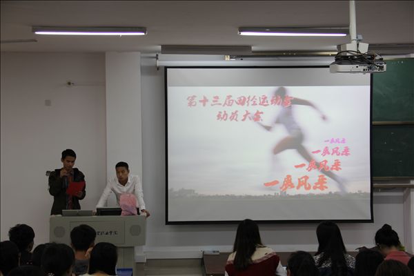 会上,学生会相关负责人解读了运动会的竞赛规程和注意事项。今年该系有170名运动员参赛,为历届之最,为确保运动会期间的良好秩序,该系在此次动员会上再次明确了责任分工。丁蓉在讲话中指出,在总结以往经验的基础上,全系要锐意进取,开拓创新,争创佳绩。她对团总支学生会各分工部门进行了工作指导,要求各部门统一协作,遇到问题及时沟通,确保运动会正常有序进行。