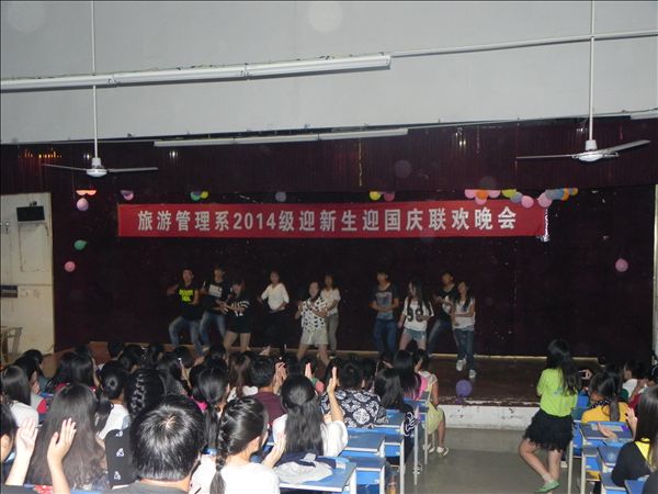 9月24日晚,旅游管理系学生会文艺部组织策划了一台“迎新生迎国庆”联欢会, 新老同学同台联欢,现场热闹温馨。