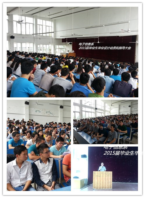 9月17日中午,电子信息系召开2015届毕业生毕业设计动员和首次指导大会,全面启动2015届毕业设计工作。电子信息系副主任张成叔、姚成,毕业设计指导教师及全体2015届毕业生参加了会议。