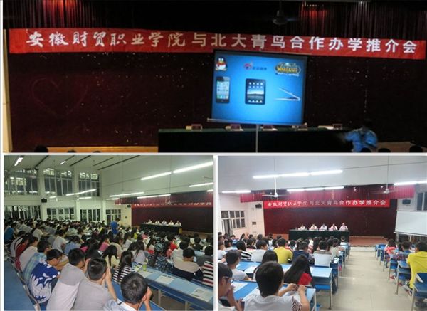 9月11日晚,电子信息系与北京青鸟信息技术教育发展有限公司合作开设“北大青鸟ACCP软件工程师特色班”推介会在5103教室隆重召开。副院长胡戴新,教务处处长余敏,北大青鸟总部代表张超经理,北大青鸟安徽服务中心凌滨总经理,电子信息系副主任张成叔以及软件技术专业教师出席了大会,大会由张成叔主持。