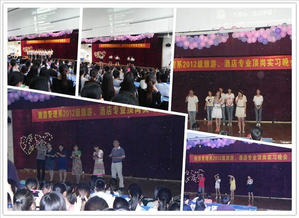 6月18日晚,5103教室全场座无虚席,旅游管理系2012级旅游、酒店专业顶岗实习晚会隆重上演。旅游管理系刘葆主任,旅游管理系党总支宋凌云副书记及2012级酒店、旅游专业顶岗实习班级辅导员观看了晚会。