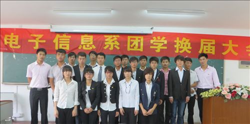 梅云凤、徐文龙、姜庆雨、葛曼曼、周玉德、杨冬、马欢欢、孙梦梦、代朋朋等九人当选为电子新信息第六届团总支成员;选举胡保蜜、胡冬雨、张鹏、李徽、江成亮、王海龙、徐永、张婷婷、郑飞、黄玉政等十人当选为电子信息系第十二届学生会成员。