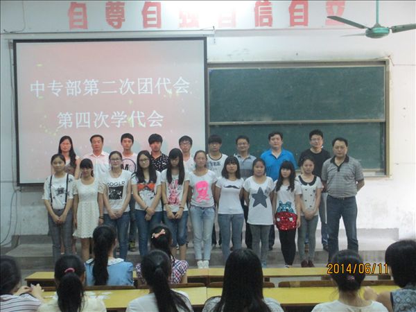6月11日中午,中专部隆重召开了第二次团代会第四次学代会,96名学生代表参加了大会,中专部主任张爱民,副主任徐道根、杨声,教师李松、孟藏珠、朱静出席了会议。