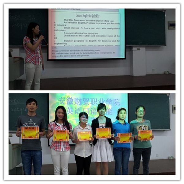 5月21日下午,由旅游管理系承办的2014年职业技能节英语口语大赛(非专业组)决赛在6102教室举行,从初赛120余名选手中脱颖而出的六位选手参加角逐,公共英语教研室的田南竹、陈琴、陈叶子、鲍秋红、何宁和胡先兰六位老师担任评委。