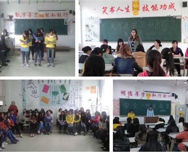各班级以饮食卫生、人身财产、交通出行、寝室生活、人际交往、心理健康等与大学生息息相关的安全文明为主题,纷纷开展口语训练、主题班会、安全知识竞赛等形式大力宣传。