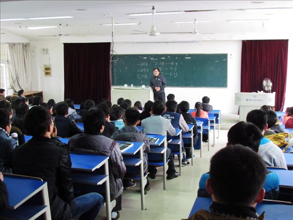 刘大俊向全体实训同学明确了此次校内实训的重要性,并介绍了实训内容;曹宝亚补充说明了实训时间安排和实训的相关注意事项;徐克介绍了顺丰速运呼叫中心的发展历史、业务范围和员工制度,并对同学们提出的疑问做出了解答。