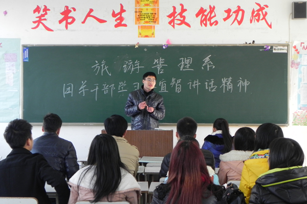 12月29日中午,旅游管理系团学组织在1103教室召开专题座谈交流会,集中学习团中央书记处第一书记秦宜智同志在中国大学生骨干培养学校第六期结业暨第七期开班式上讲话精神,系团学干部31人参加了学习座谈会。