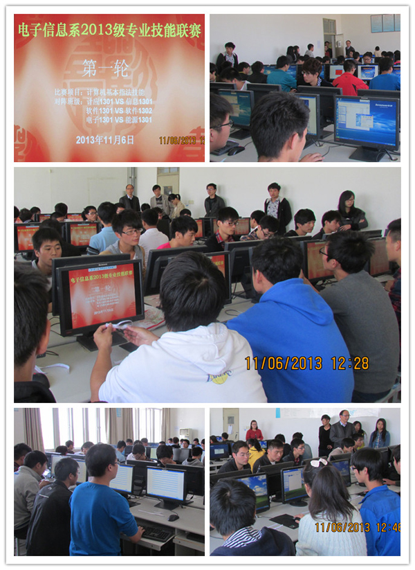 11月6日下午,电子信息系2013级专业技能联赛第一轮比赛在实训楼8305和8307实训室开赛。