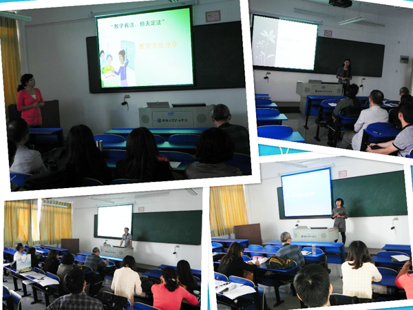 主讲老师事前精心准备并运用PPT现场展示,交流分享了“我最满意的一堂课”和“我最常用的课堂教学方法”,结合各自的任教课程介绍了“备课素材如何取舍”、“教学环节如何把握”、“教学方法如何实施”等教学体会,并演示了“学习体验式”、“角色扮演式”等教学方法的运用效果和注意事项。