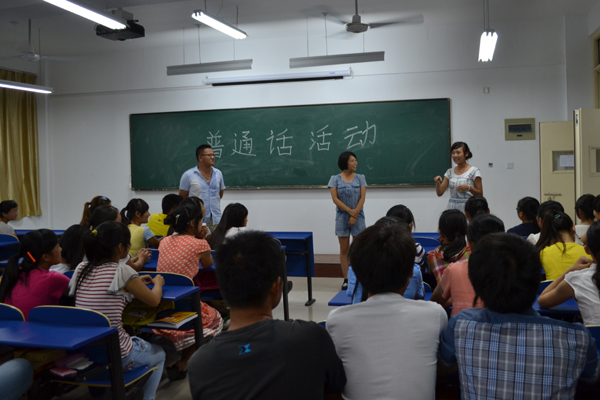 结合第十六届全国推广普通话宣传周这一契机,9月14日晚,行知管理学院团总支组织部在2013级新生班级中开展了题为“讲普通话活动”的口语训练,并组织同学们自己动手绘制宣传画,在系宣传橱窗中宣传推广普通话,以树立同学们的语言规范意识,提高同学们民族文化素质。