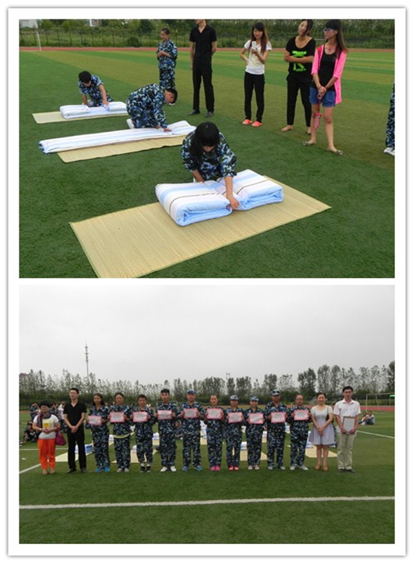 本次大赛标准严格,要求被子叠起时对折整齐,无斜面、外形方正、棱角分明、被子表面平整,无褶皱、上下层薄厚一致,被子清洁无异味。比赛中,选手们身着军装,将自己的草席和被子按规划地点依次铺开,掏被子、捏边、抠角、整平,一个个细致入微的动作,一张张严肃认真的面容,已初步体现出军训中所培养的细心认真、务实肯干的精神品质。