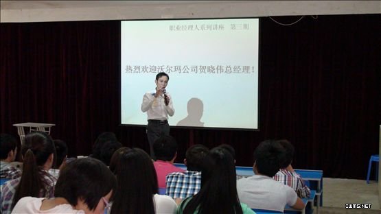 5月16日下午,雪岩贸易学院举办第三期职业经理人讲座,该讲座作为学院第九届校园文化艺术节活动项目,邀请的职业经理人为荣获沃尔玛(中国)投资有限公司2011年安徽省区“最佳总经理”荣誉称号、来自沃尔玛六安店的总经理贺晓伟先生。