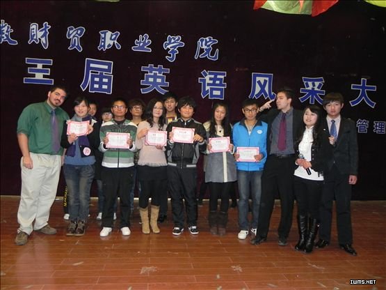11月25日晚,由旅游管理系文艺部和英语协会联合举办的第三届英语风采大赛在5103教室举行。田南竹、宁蓓、王婷、徐小芳、胡林杰及DANIEI、DAVID等七位老师应邀担任评委。