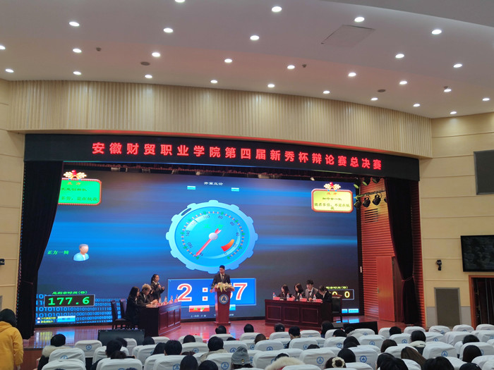 12月28日晚,由学院团委主办、演讲与口才协会承办的安徽财贸职业学院第四届“新秀杯”大学生辩论赛总决赛在报告厅举行,学生处、团委、马克思主义学院和公共教学部相关老师参加并担任评委。