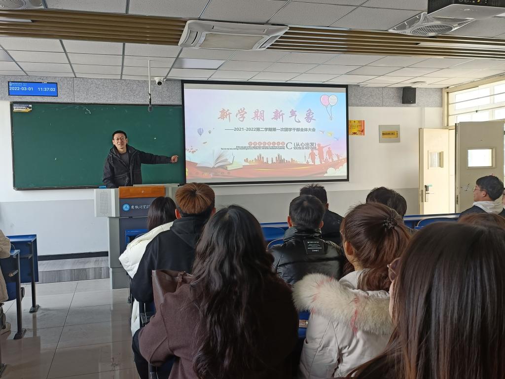 3月1日中午,新学期团学干部会议在2407教室召开。校团委孙峻峰、石冰、蔡依倩等三位老师和全体团学生干部参加本次会议。会议由孙峻峰主持。