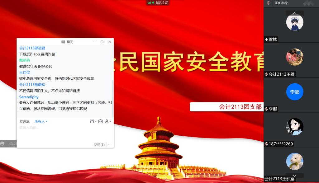 各院部团总支指导各班级团支部开展了“喜迎二十大,永远跟党走,奋进新征程”主题团日活动,各团支部通过组织线上线下多种形式的学习交流活动,让团员青年认识到作为新时代大学生肩膀上所承担的责任与使命,从而提升同学们的国家安全意识。