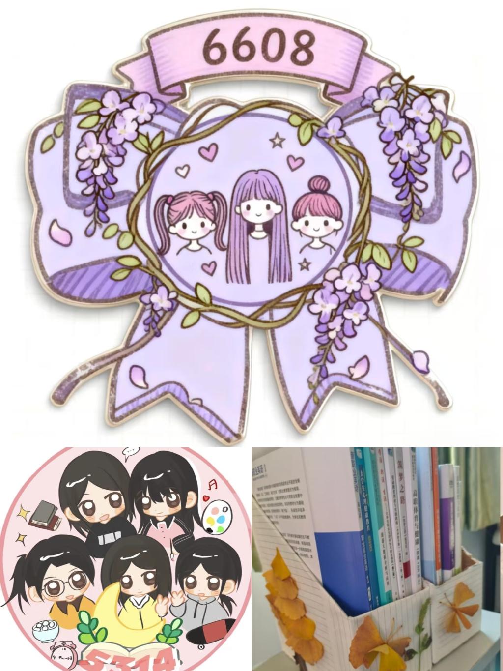 活动中,大家各展所长,用巧思为宿舍注入鲜活生机。有的同学设计分层收纳、分类叠放的方案,让原本拥挤的角落变得井然有序;有的则将奶茶袋、快递盒重新改造,变身成印着可爱图案的文具袋、带着个性涂鸦的小书架;还有同学结合宿舍的整体风格与室友们的共同爱好,设计专属宿舍徽章,每一笔线条、每一种色彩都藏着独属于他们的“宿舍故事”。