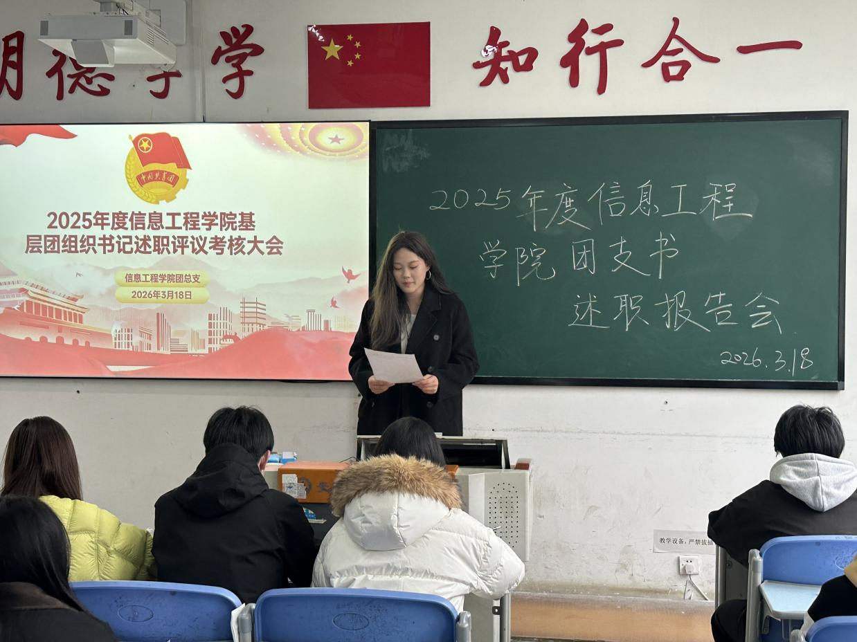 3月18日下午,信息工程学院在1105教室举办2025年度团支书述职报告会。本次活动特邀学院团总支书记及各部门部长担任评委,信息工程学院全体团支书依次登台进行现场述职,汇报工作开展情况,系统回顾过去一年的团务工作,明确未来发展目标。